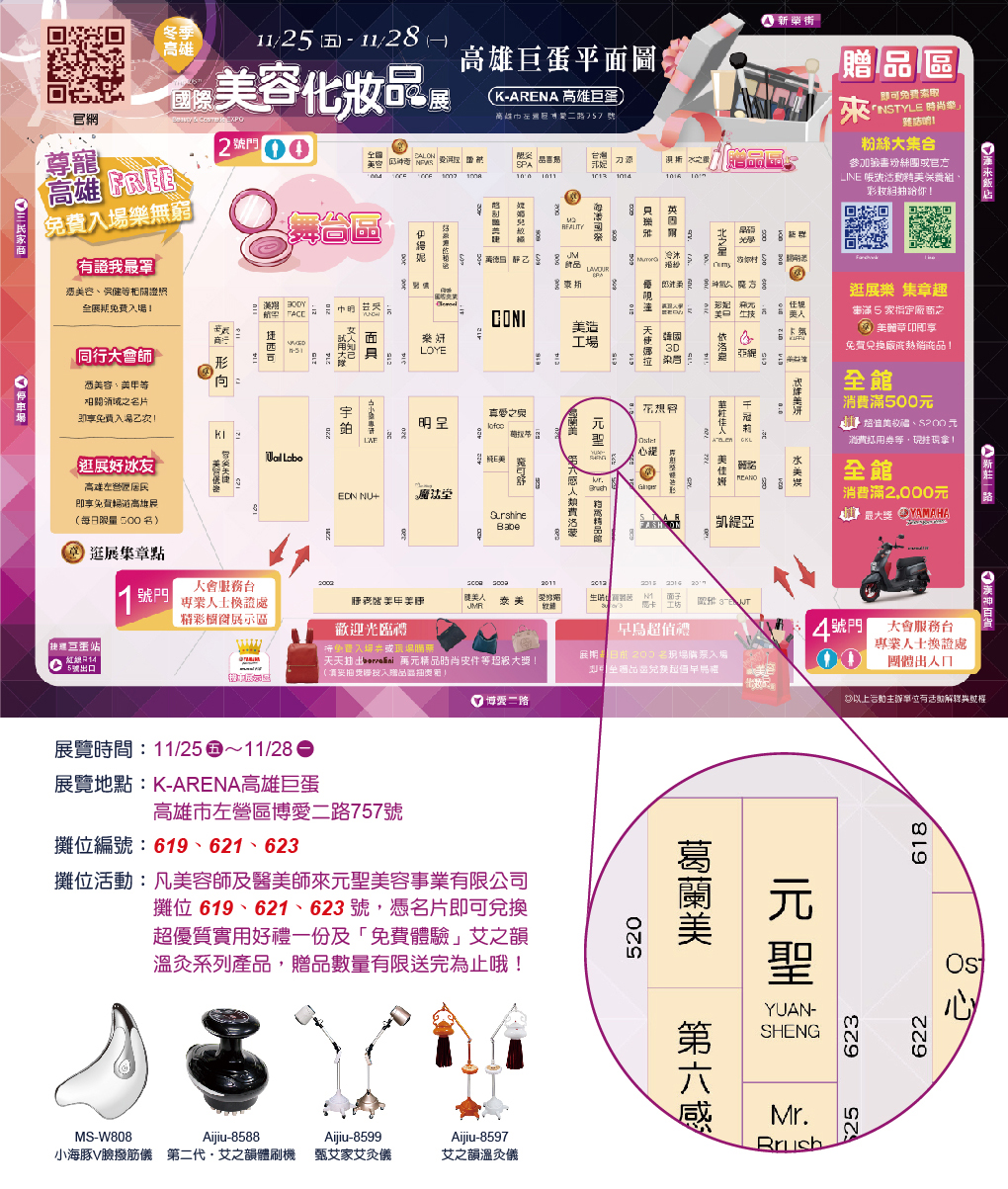 2016高雄巨蛋國際美容化妝品展,元聖美容在「攤位623號」歡迎現場體驗新儀器 !