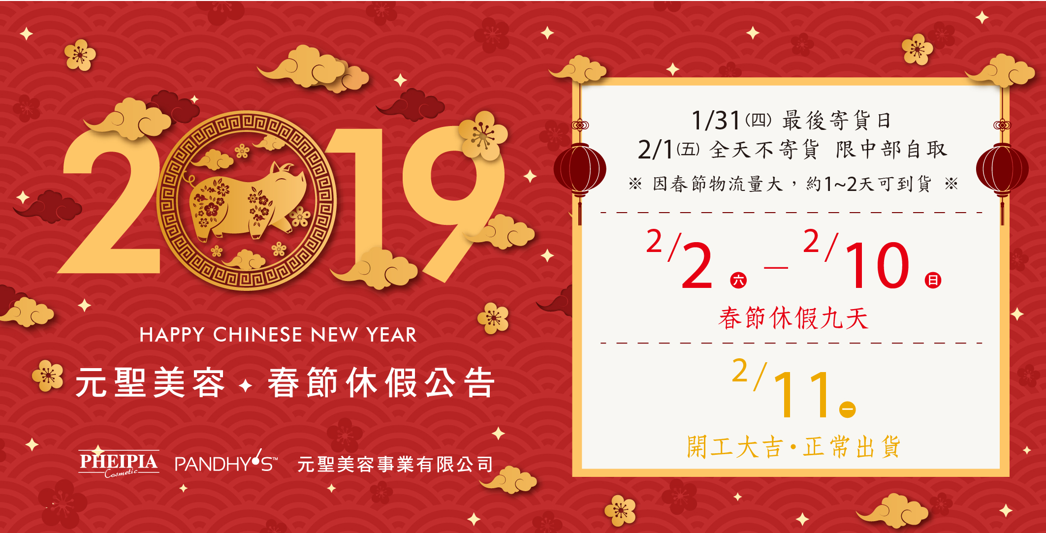 元聖美容春節休假公告:祝大家豬事大吉 珠寶滿窖