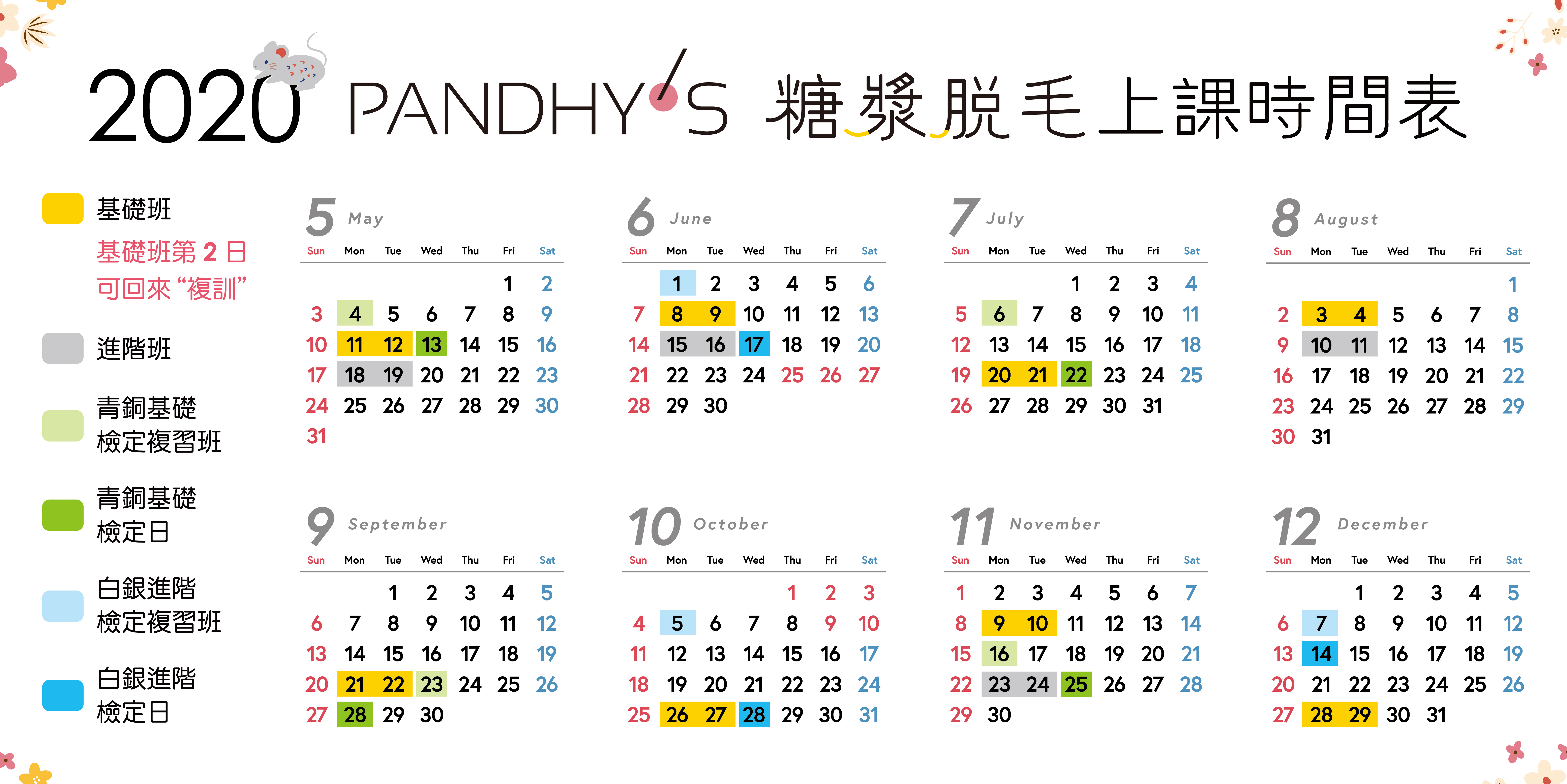 2020年PANDHY'S糖漿脫毛上課時間表