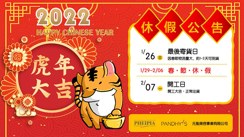 📍 1/29 (六) ~ 2/6 (日) 春節休假